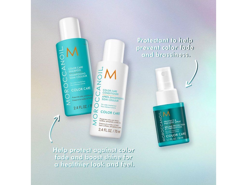 Dopřejte svým barveným vlasům špičkovou péči s exkluzivní sadou Moroccanoil® Discover COLOR CARE. Tato pečující kolekce byla speciálně navržena pro ochranu barvy a udržení její intenzity a lesku po delší dobu. Je obohacena o arganový olej, technologii ArganID™, pomáhající uzamknout barvu uvnitř vlasu, dále chrání před blednutím barvy a je vhodná pro všechny typy vlasů.