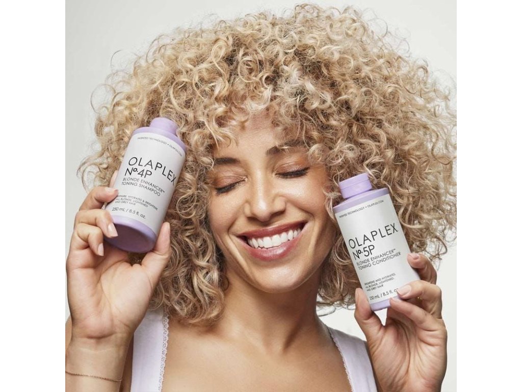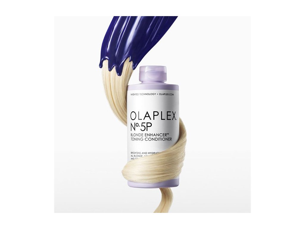 OLAPLEX® No.5P Blonde Enhancer Toning Conditioner - luxusní fialový kondicionér, který neutralizuje žluté tóny a dodává blond, šedým i odbarveným vlasům zářivý, studený odstín. Díky patentované technologii OLAPLEX Bond Building hloubkově regeneruje poškozená vlákna, zanechává vlasy hedvábně hladké, silné a lesklé bez zatážení. Perfektní doplňěk pro udržení salonní blond barvy i doma.